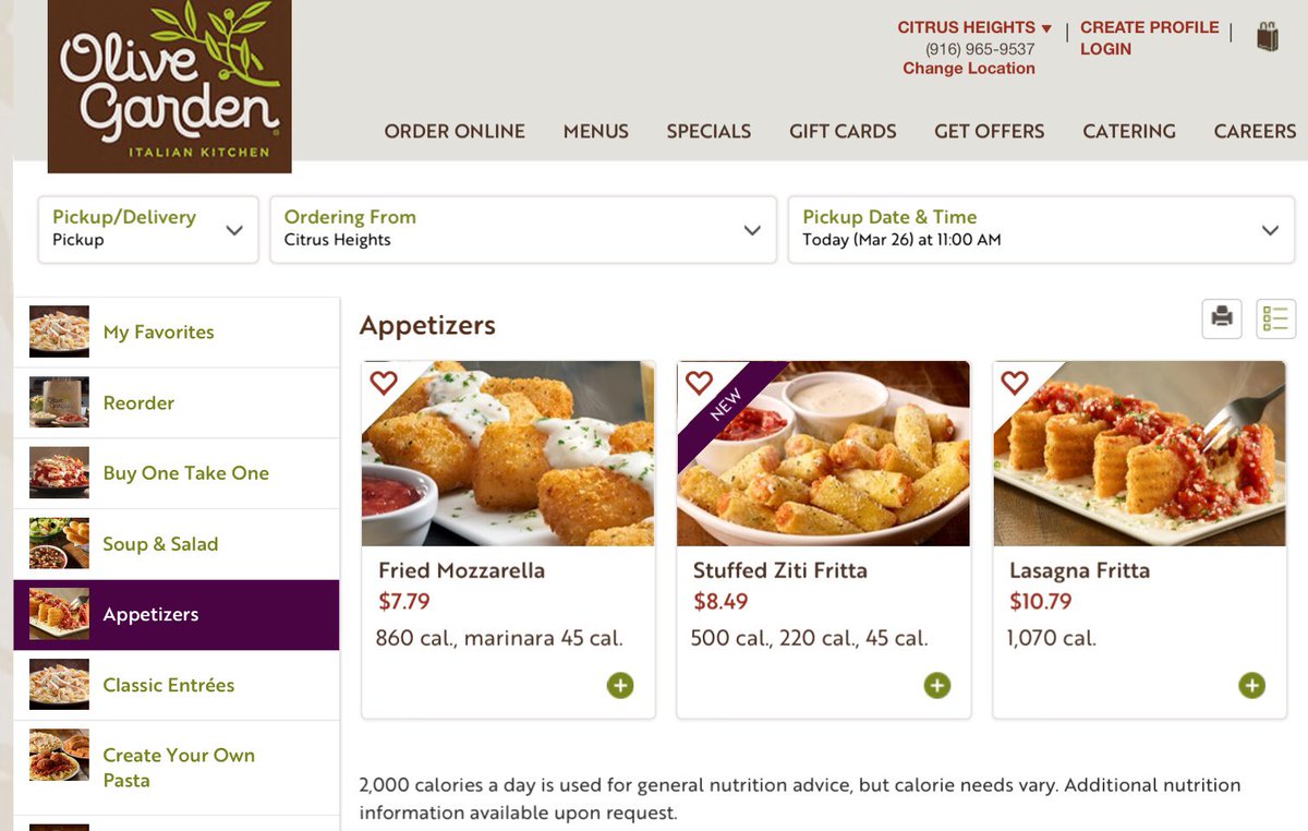 Start Your Online Order Togo Olive Garden Italian Restaurant